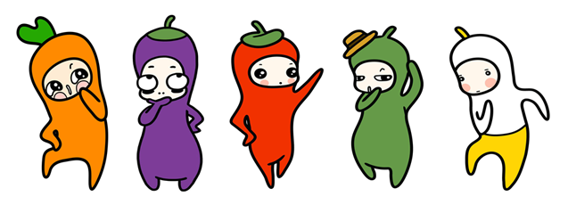 ‘건강한 음식 전도사’로서, 우리 주변에서 쉽게 볼 수 있는 야채들을 사람들의 모습으로 반영한 캐릭터들입니다.